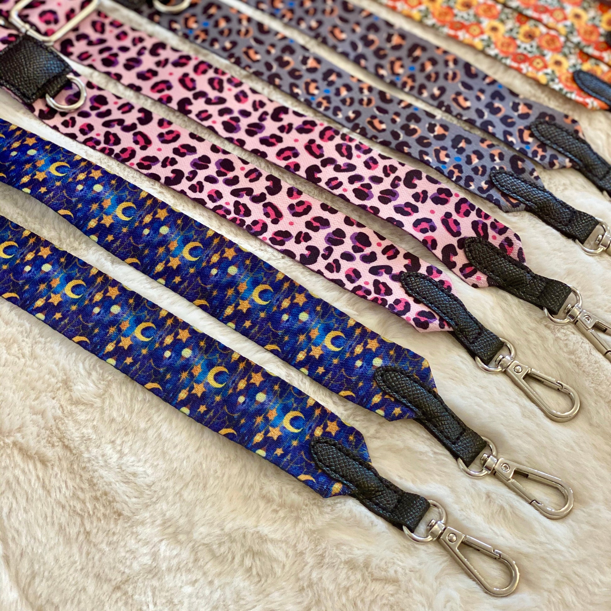 - Comfortable wide fully adjustable shoulder strap with faux leather detailing, silver or gold hardware & D-ring for clipping small matching treat & poop bag pouch to.