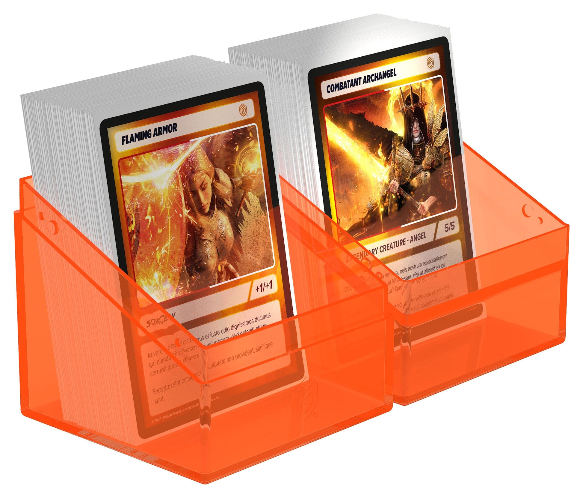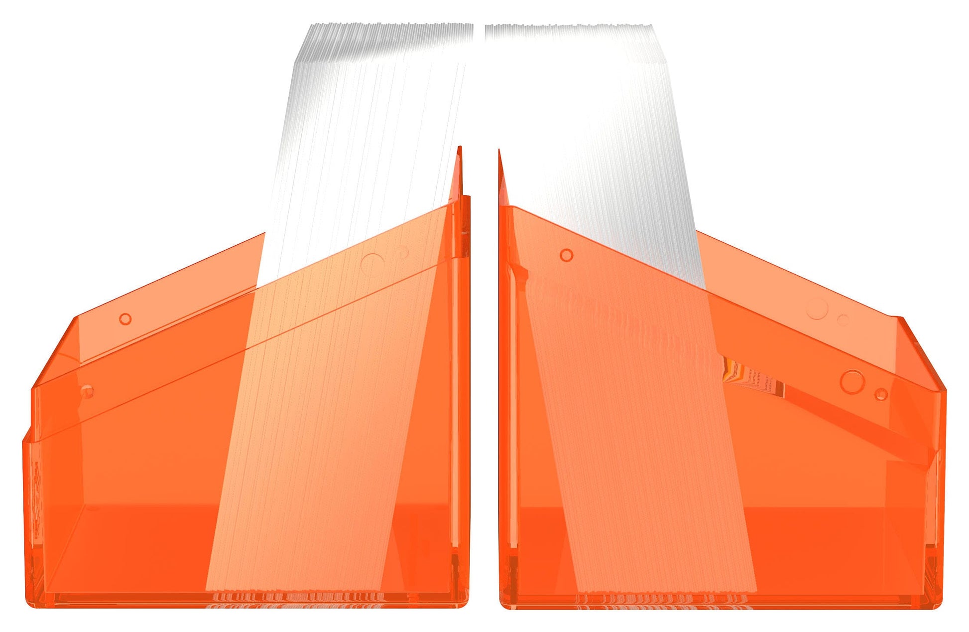 The legend is back in an all new look: with the transparent Boulder 100+ Clear, you'll always know exactly which cards are in your deck box. The Boulder 100+ Clear is a durable and reliable deck box with a secure closure. It can hold up to 100 double-sleeved or 120 single-sleeved cards from all popular trading card games like Magic: The Gathering, Pokémon, Lorcana, One Piece, or Yu-Gi-Oh!