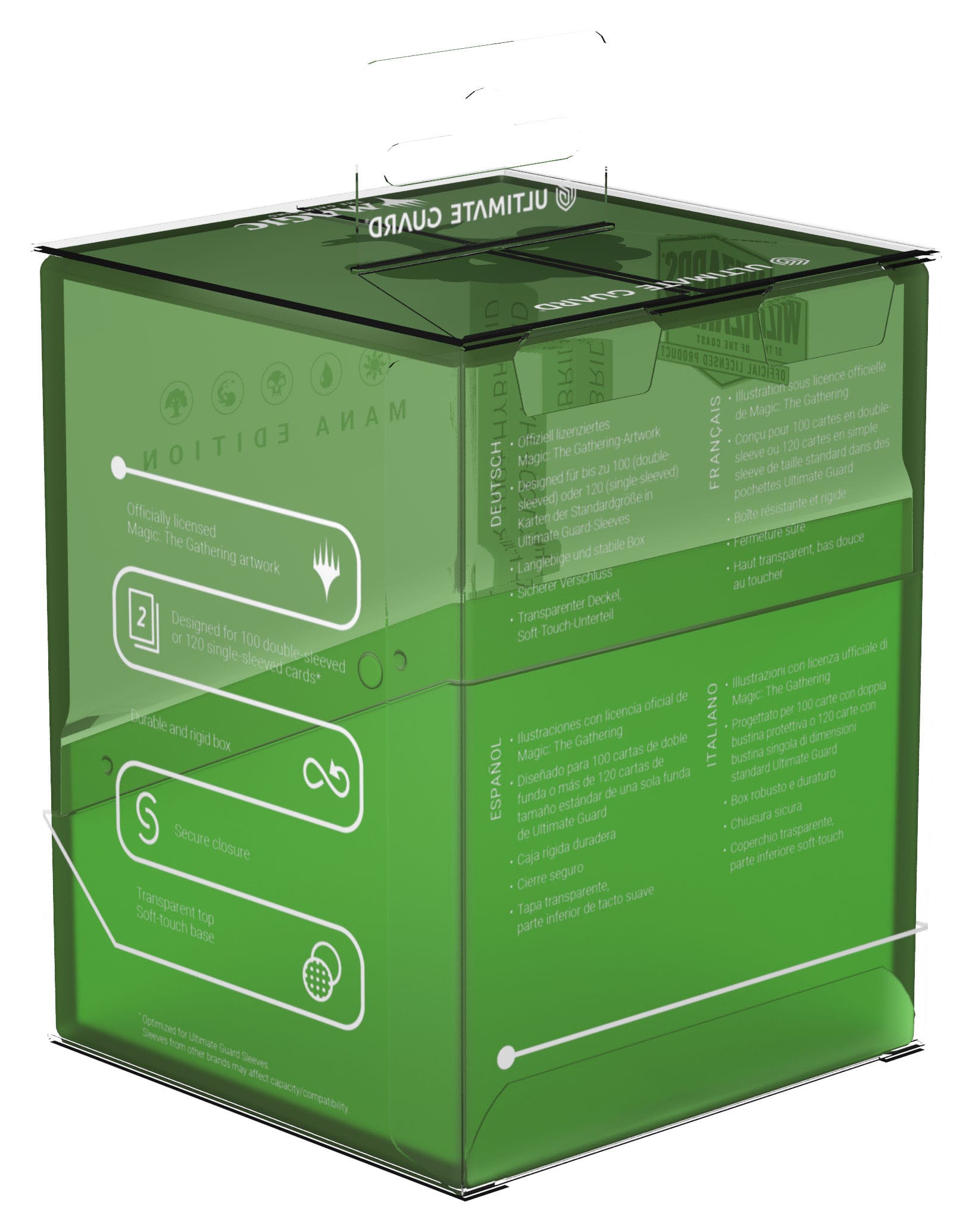 - Designed for 100 double-sleeved cards in Ultimate Guard sleeves