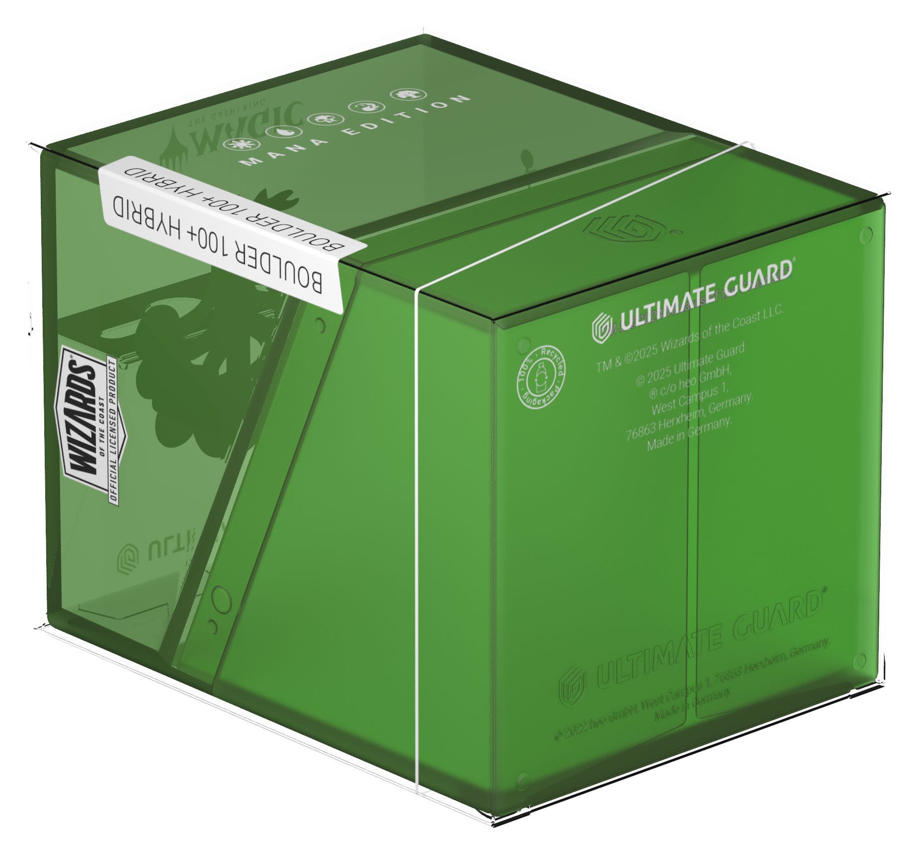 Ultimate Guard's Boulder 100+ Hybrid combines the completely transparent top of the Boulder Clear with a soft-touch base in the style of the original Boulder. The officially licensed MTG deck box is easy to open, but offers reliable protection for your cards thanks to its sturdy case and secure closure. The Boulder 100+ Hybrid holds up to 100 double-sleeved cards and is suitable for all Magic: The Gathering formats such as Commander (EDH), Standard or Modern.
