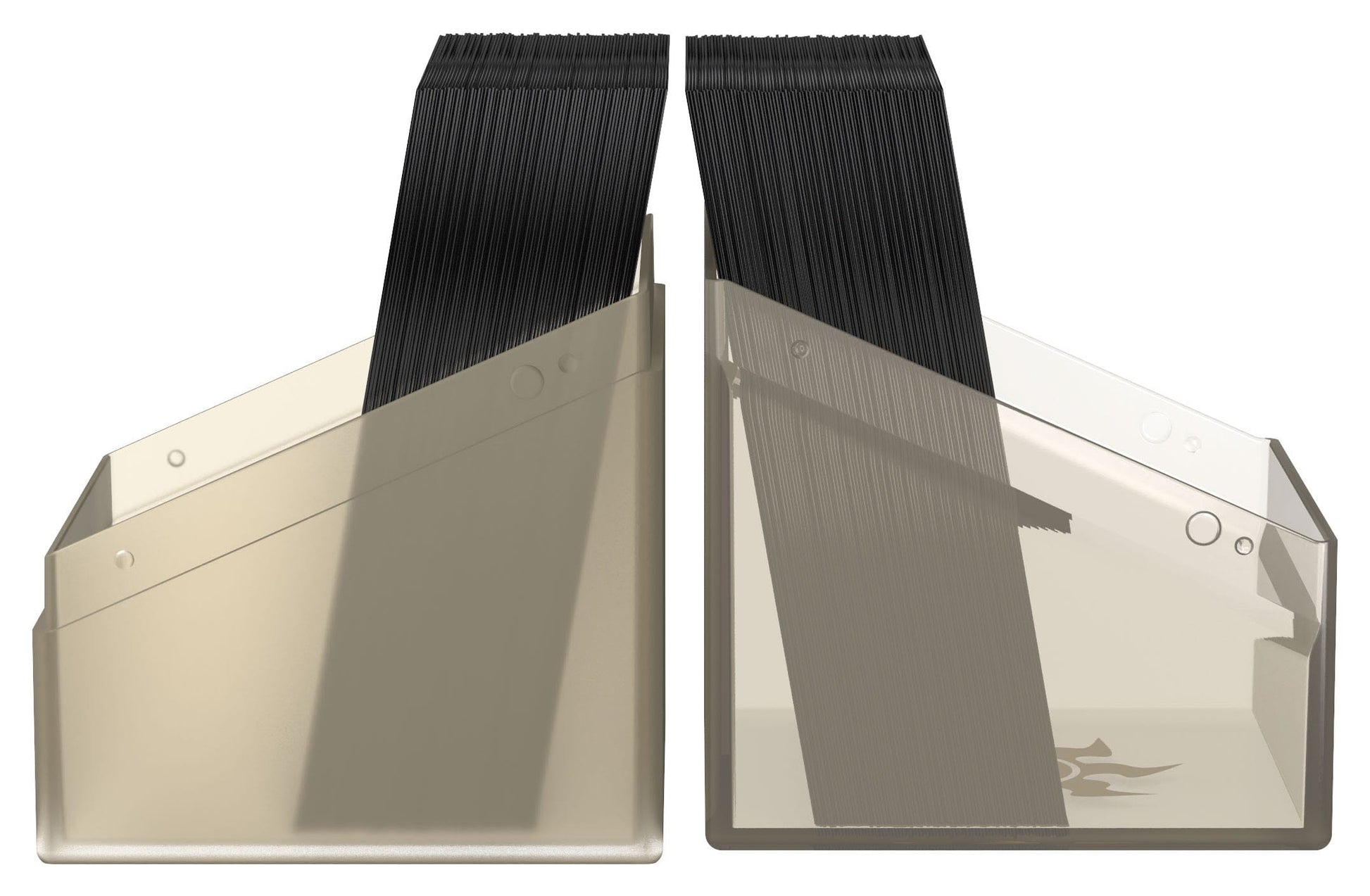 Ultimate Guard's Boulder 100+ Hybrid combines the completely transparent top of the Boulder Clear with a soft-touch base in the style of the original Boulder. The officially licensed MTG deck box is easy to open, but offers reliable protection for your cards thanks to its sturdy case and secure closure. The Boulder 100+ Hybrid holds up to 100 double-sleeved cards and is suitable for all Magic: The Gathering formats such as Commander (EDH), Standard or Modern.