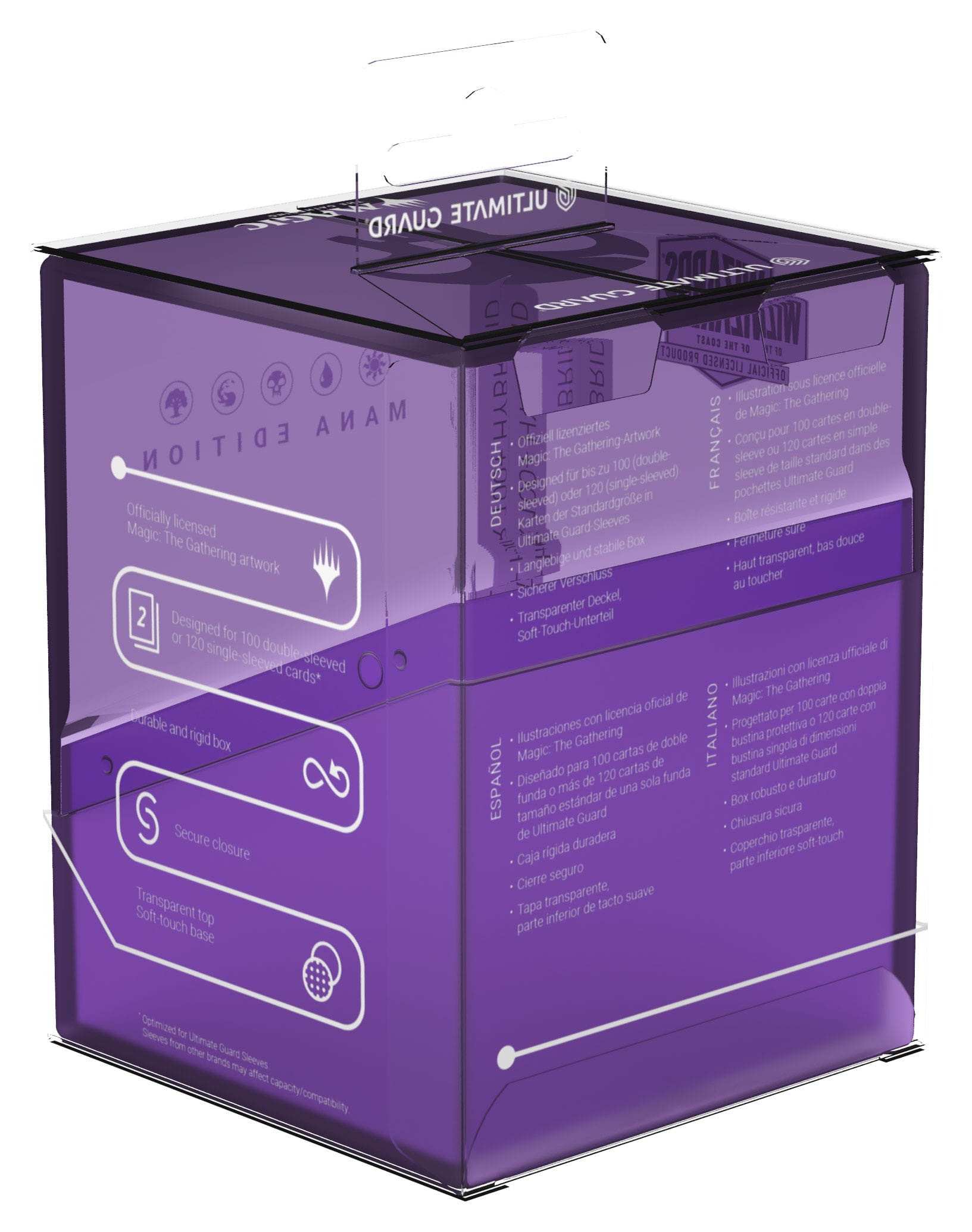 - Designed for 100 double-sleeved cards in Ultimate Guard sleeves