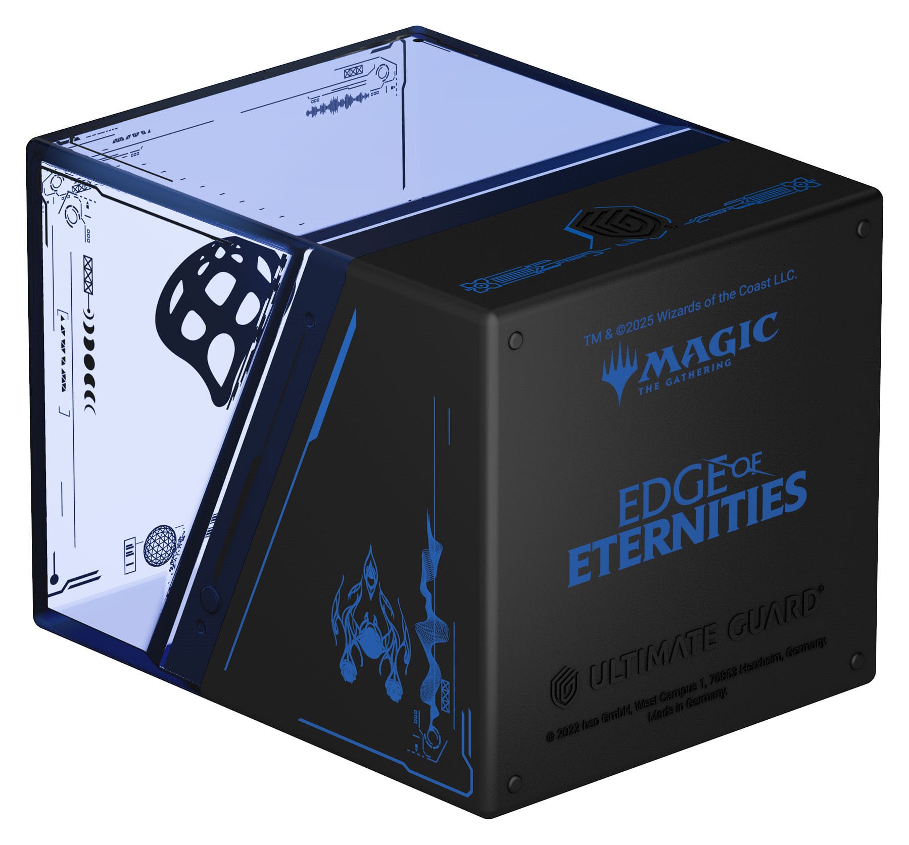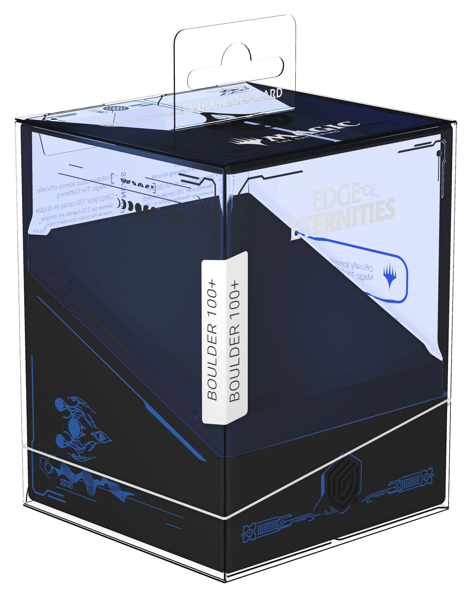 The Boulder 100+ is a durable and reliable deck box, featuring officially licensed art from Magic: The Gathering's "Edge of Eternities" set. Despite its secure closure, the Boulder 100+ is easy and convenient to open and holds 100 double-sleeved cards in Ultimate Guard sleeves. Designed to combine with all Ultimate Guard mass storage boxes, Boulders fit especially well into Arkhive, Superhive and Flip'n'Tray boxes.