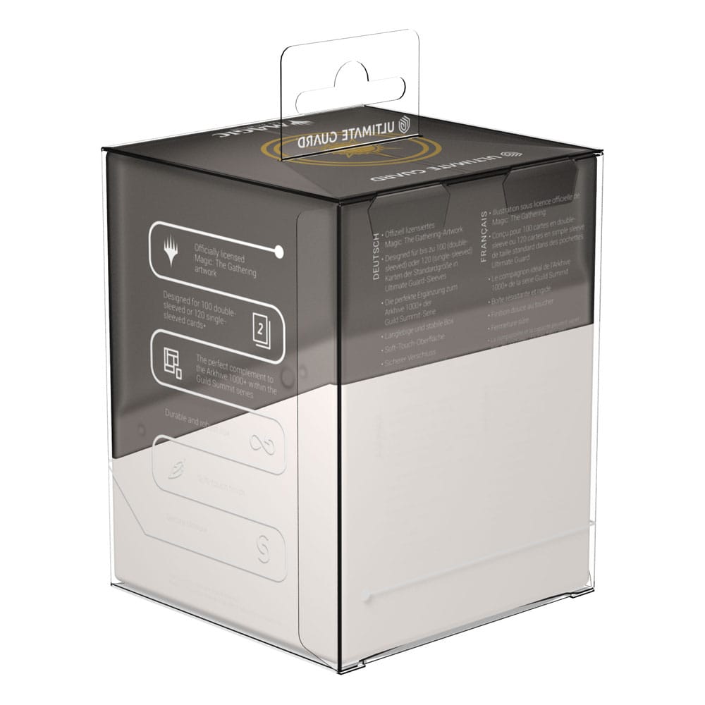 Ultimate Guard celebrates one of the most iconic and popular planes in Magic: The Gathering's history with the "Guild Summit" series: Ten elegant Boulder 100+ featuring the golden crest of each guild on the semi-transparent deck boxes, all with a silky soft-touch finish. The Boulder 100+ holds up to 100 double-sleeved cards, making it the perfect home for your two-color Commander deck! Don't miss out on the stunning Arkhive 1000+ Xenoskin from the "Guild Summit" series either, which is the perfect storage place for up to ten Boulder 100+.