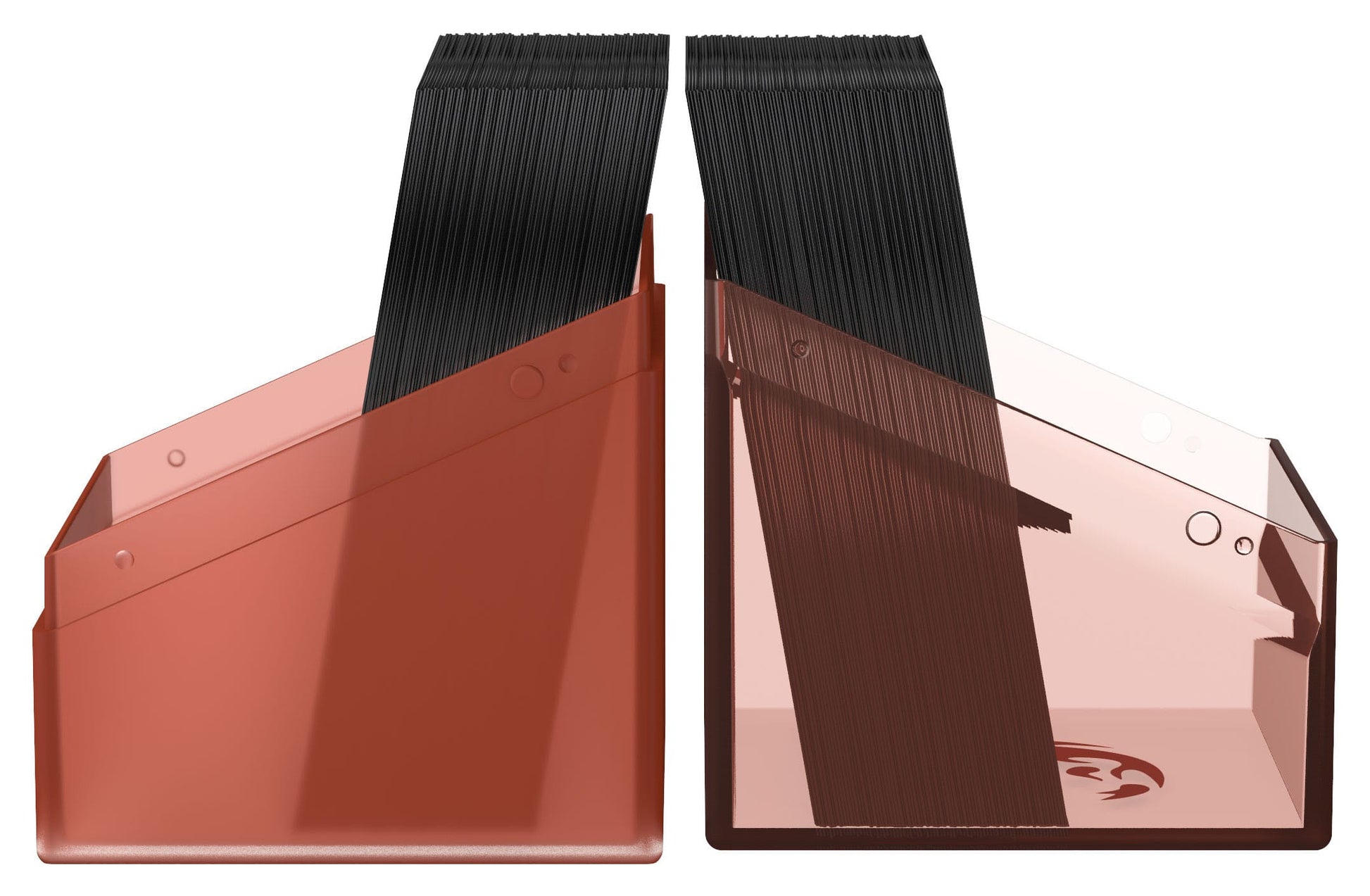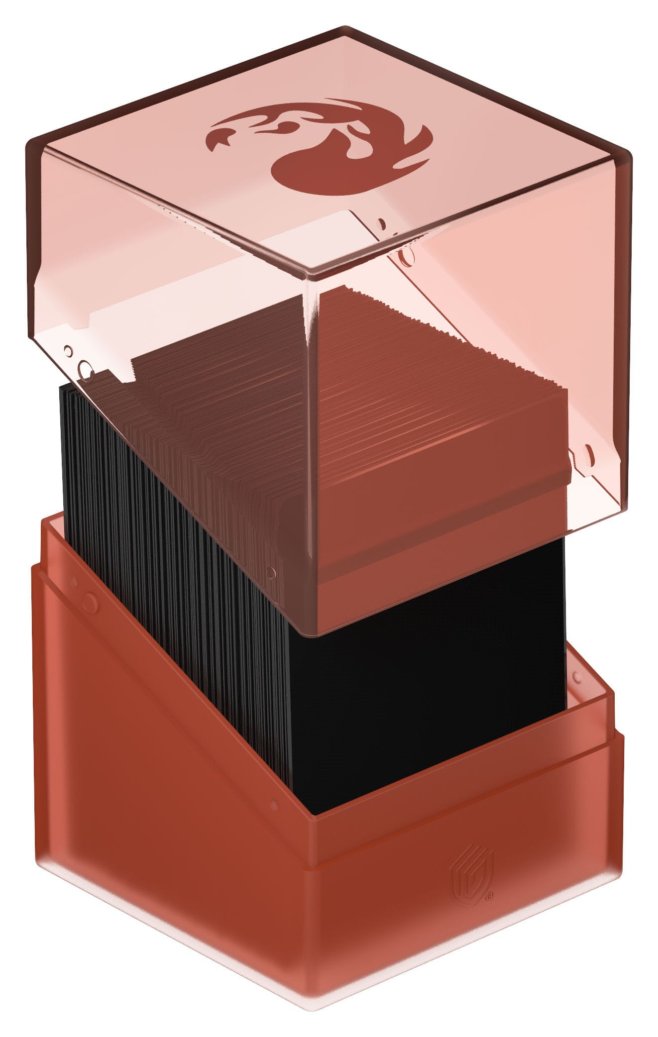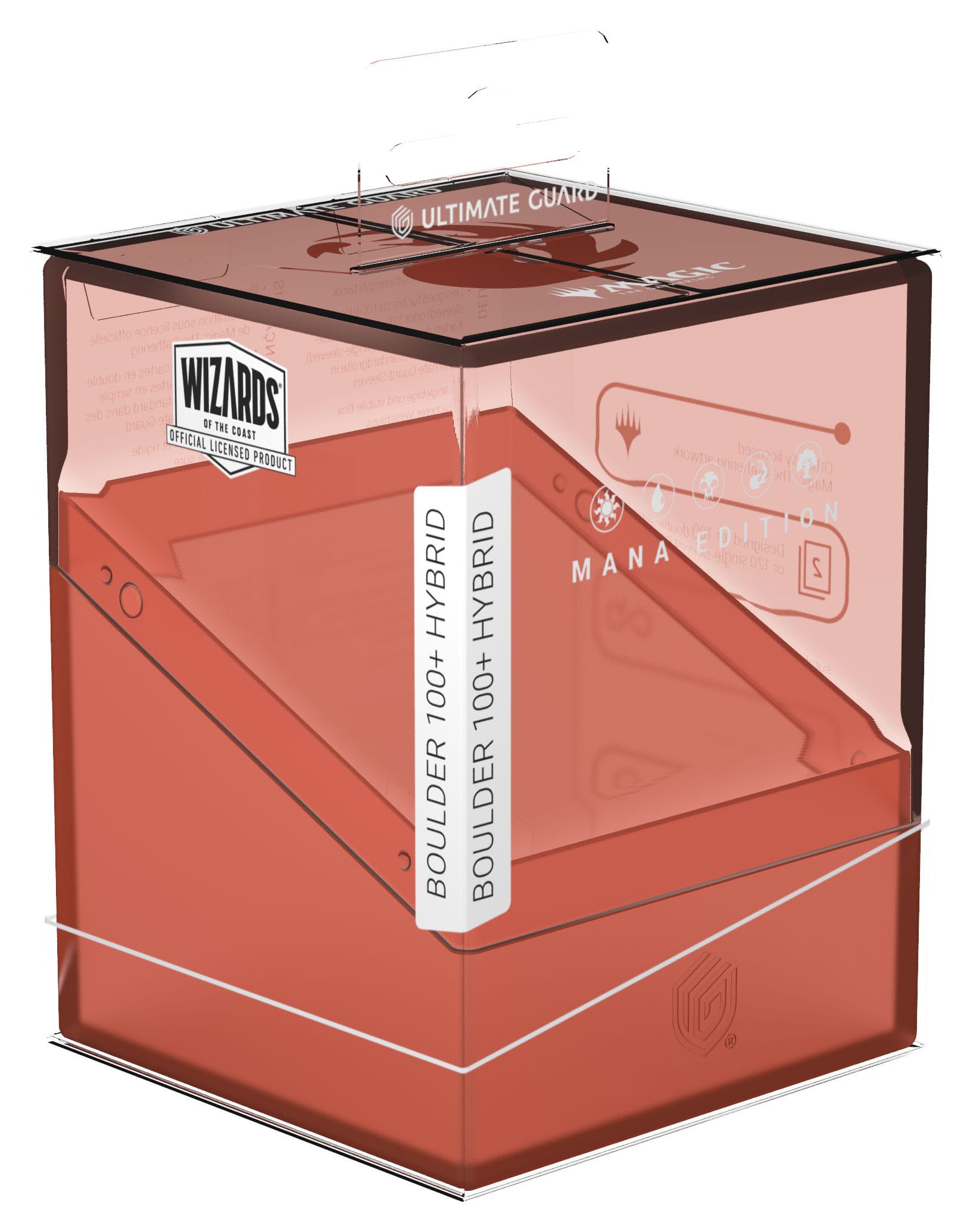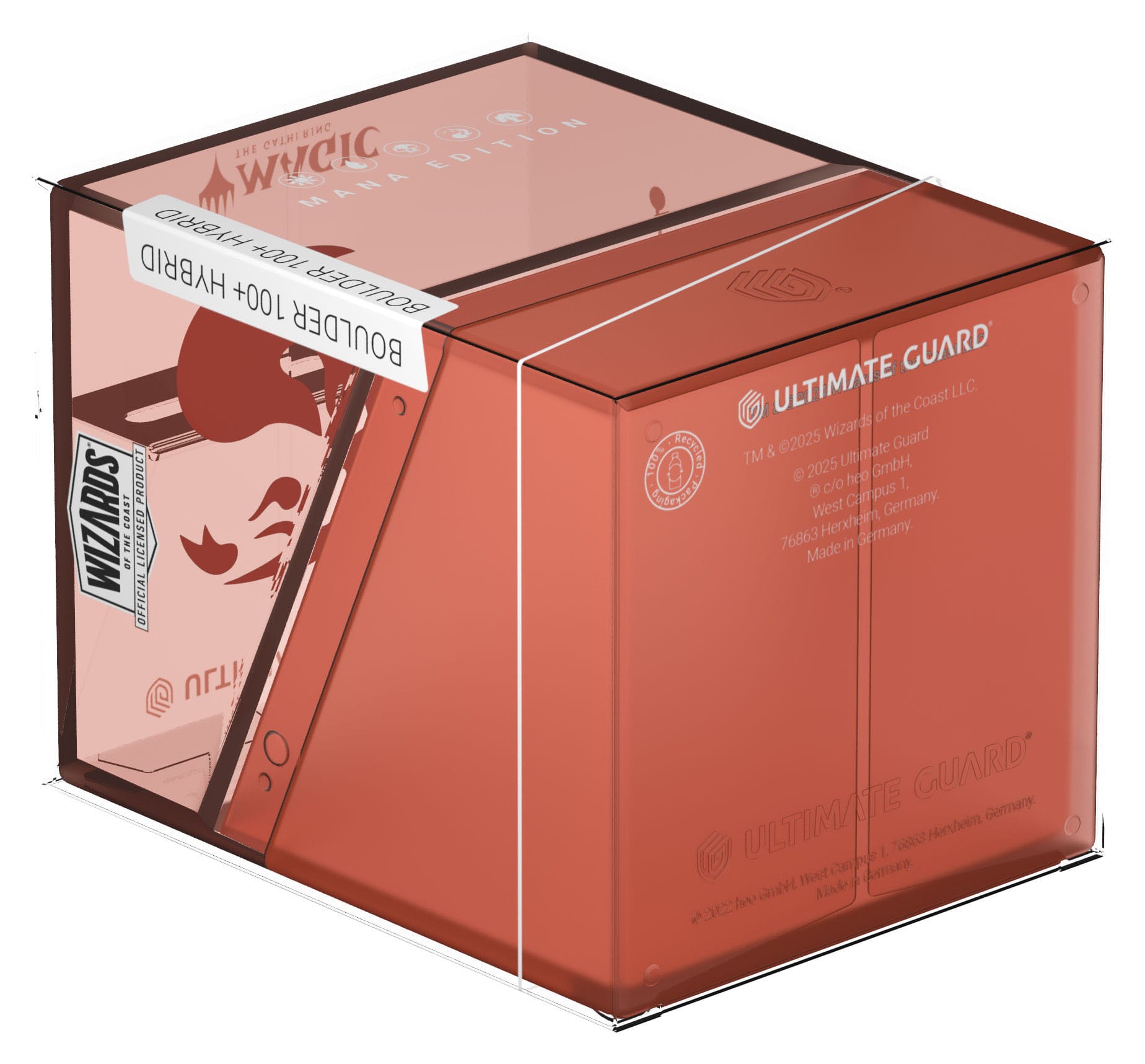Ultimate Guard's Boulder 100+ Hybrid combines the completely transparent top of the Boulder Clear with a soft-touch base in the style of the original Boulder. The officially licensed MTG deck box is easy to open, but offers reliable protection for your cards thanks to its sturdy case and secure closure. The Boulder 100+ Hybrid holds up to 100 double-sleeved cards and is suitable for all Magic: The Gathering formats such as Commander (EDH), Standard or Modern.