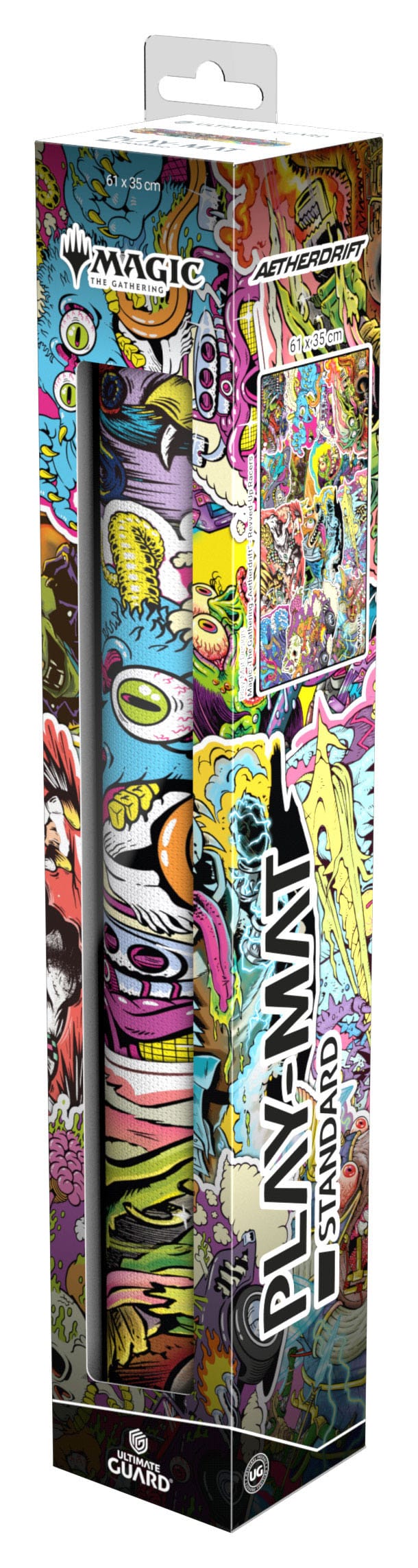 The revved-up racers from Magic: The Gatherings's Aetherdrift are waiting to hit the gas on the Special Edition Play-Mat Revved-Up Racers! The Play-Mat in stickerbomb style, with officially licensed MTG artwork in the standard size 61x35cm, improves the gaming experience and protects cards and accessories during gameplay with its cushioned top and anti-slip underside. The Play-Mat comes with a high-quality stitched edge.