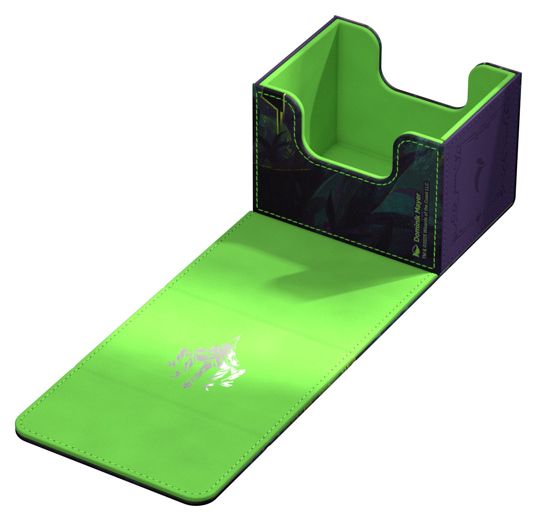 The Sidewinder 100+ made from durable Xenoskin material holds up to 100 double-sleeved or 120 single-sleeved cards, which are kept secure in the deck box thanks to a strong magnetic closure and soft microfiber interior. The sturdy, high-quality Xenoskin surface of the Sidewinder is printed in full color with officially licensed artwork from Magic: The Gathering’s Tarkir: Dragonstorm set.