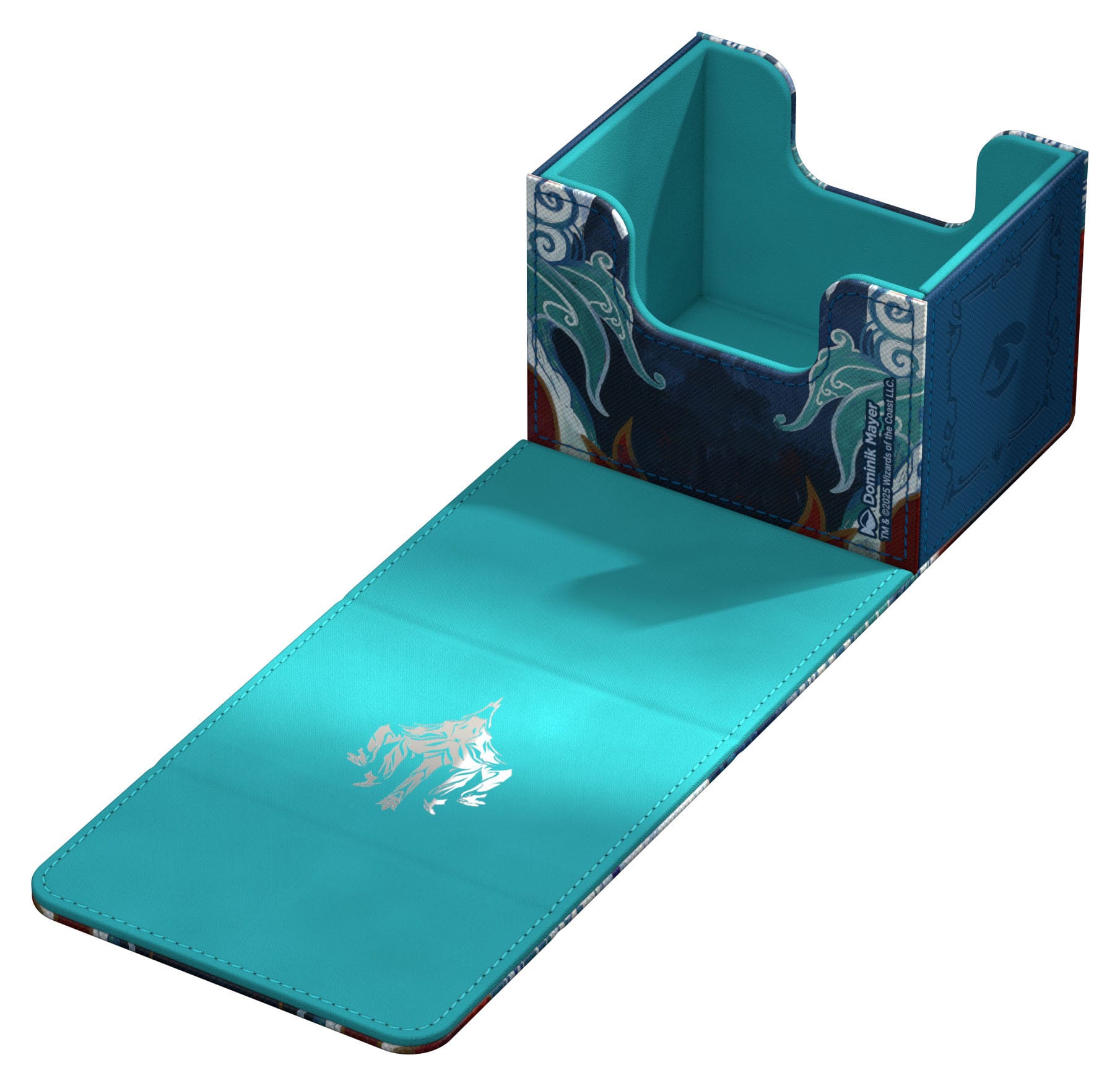 The Sidewinder 100+ made from durable Xenoskin material holds up to 100 double-sleeved or 120 single-sleeved cards, which are kept secure in the deck box thanks to a strong magnetic closure and soft microfiber interior. The sturdy, high-quality Xenoskin surface of the Sidewinder is printed in full color with officially licensed artwork from Magic: The Gathering’s Tarkir: Dragonstorm set.