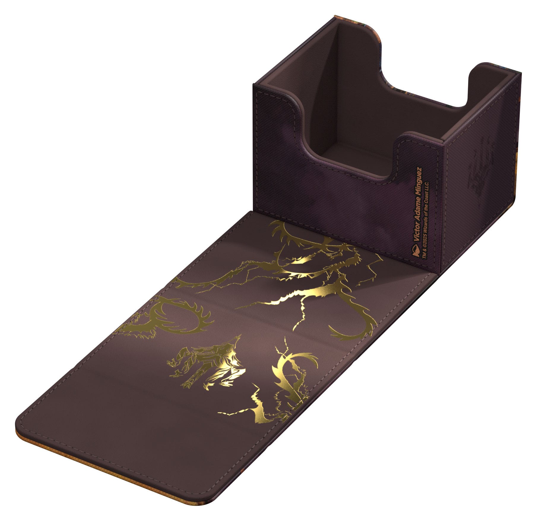 The Sidewinder 100+ made from durable Xenoskin material holds up to 100 double-sleeved or 120 single-sleeved cards, which are kept secure in the deck box thanks to a strong magnetic closure and soft microfiber interior. The sturdy, high-quality Xenoskin surface of the Sidewinder is printed in full color with officially licensed artwork from Magic: The Gathering’s Tarkir: Dragonstorm set.