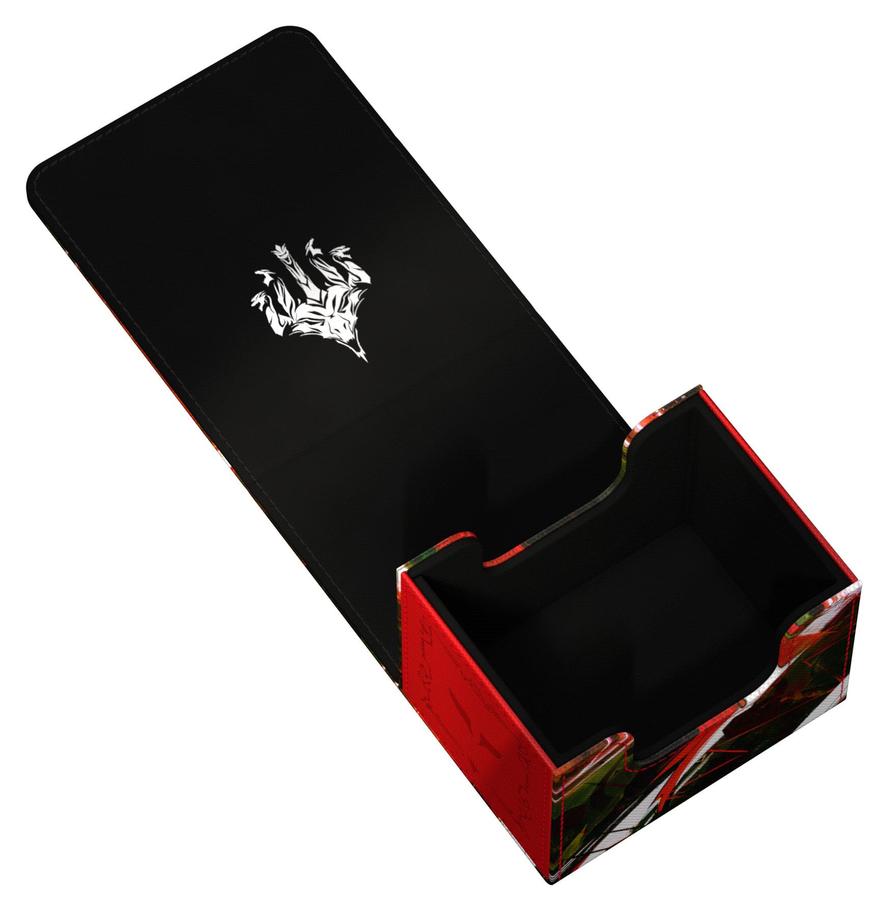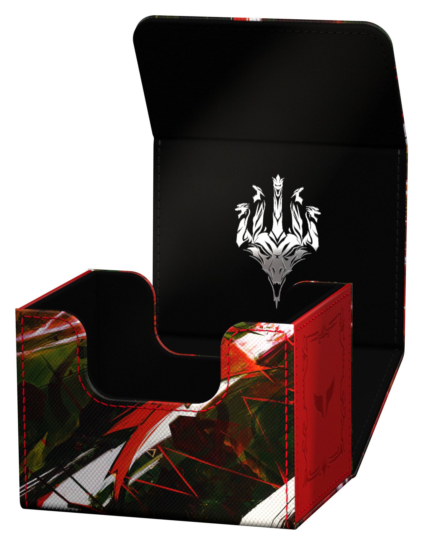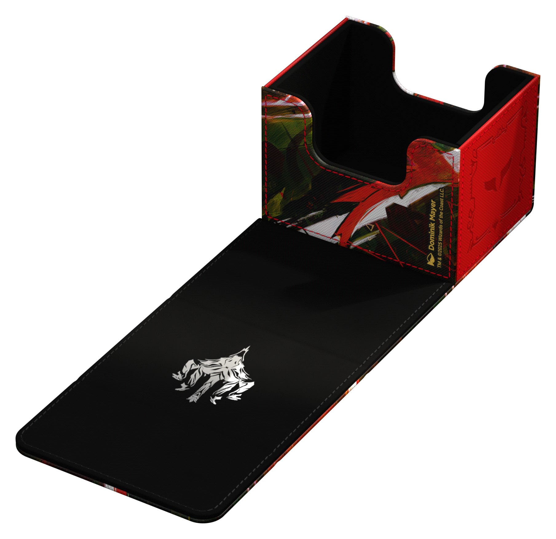The Sidewinder 100+ made from durable Xenoskin material holds up to 100 double-sleeved or 120 single-sleeved cards, which are kept secure in the deck box thanks to a strong magnetic closure and soft microfiber interior. The sturdy, high-quality Xenoskin surface of the Sidewinder is printed in full color with officially licensed artwork from Magic: The Gathering’s Tarkir: Dragonstorm set.