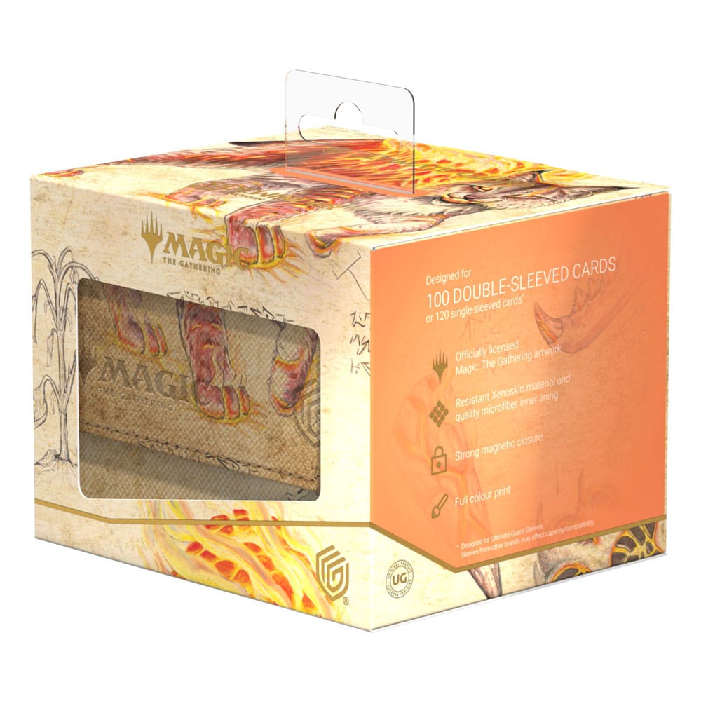Explore the ferocious side of Bloomburrow! Our Sidewinder 100+ Xenoskin are made of full color printed, resistant Xenoskin material and feature the officially licensed Magic: The Gathering artworks of the epic Calamity Beasts from Bloomburrow in the beautiful "Borderless Field Notes" style. The deck boxes hold up to 100 (double-sleeved) or 120 (single-sleeved) cards. They are the perfect choice for safely storing cards and decks from all popular TCGs thanks to the strong magnetic closure and the microfiber inner lining.