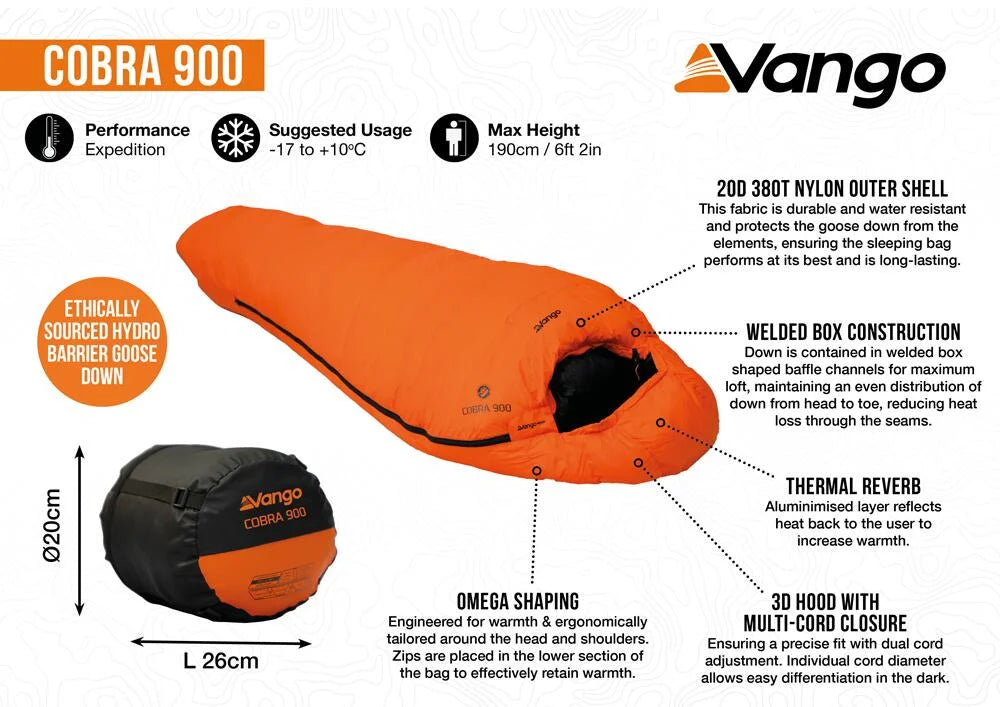 Vango Cobra 900 Down Sleeping Bag - Orange