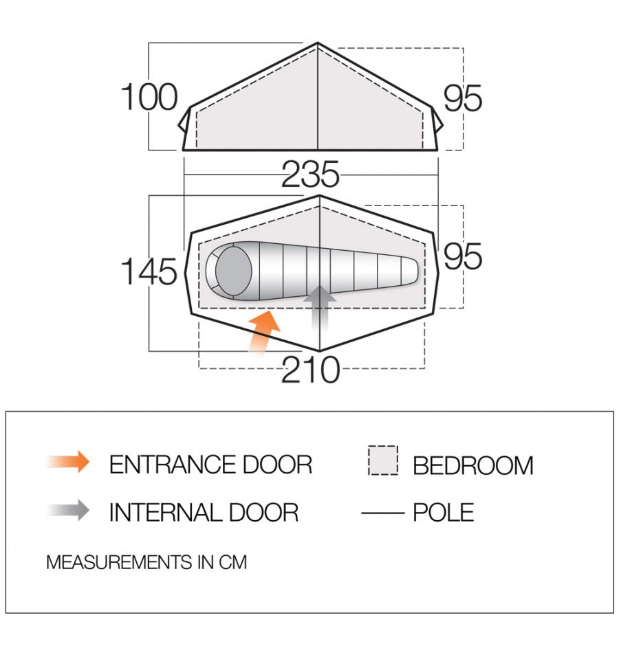 - Gothic Arch Pole Structure - Increases stability and assists water/snow run-off from the flysheet