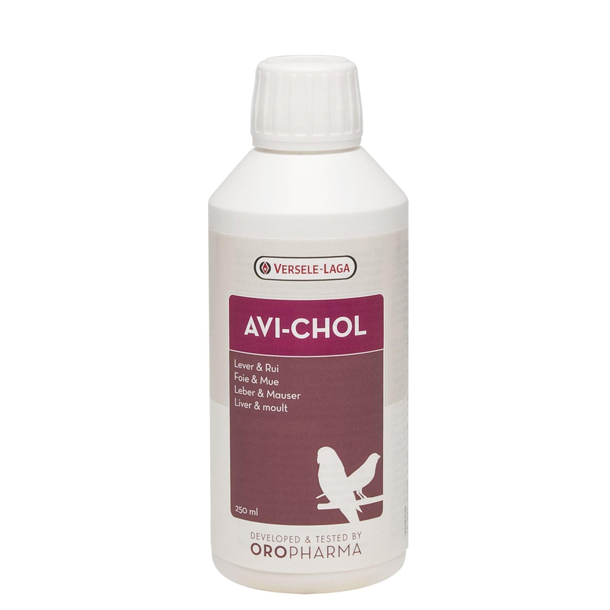 Versele Laga Oropharma Avi-Chol is a dietary supplement for birds for an optimal liver function and a good moult. It is a unique liver tonic based on sulphuric amino acids biotin sorbitol and vitamin B12. Avi-Chol ensures optimal growth perfect plumage development and pigmentation in young birds as well as perfect plumage development and pigmentation in moulting birds.