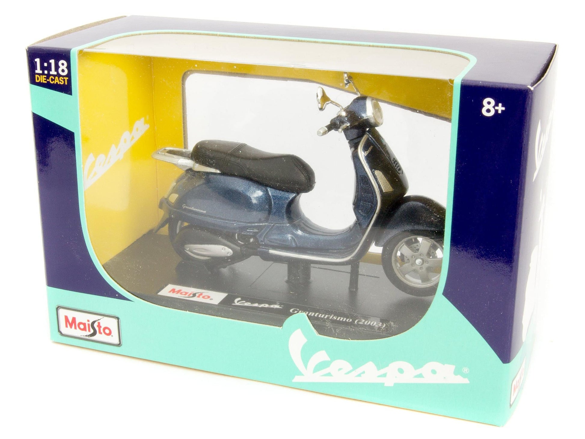 The Vespa Granturismo 2003 Blue 1:18 Scale Maisto Diecast Model represents the luxurious GT series that marked Vespa's entry into the modern touring scooter segment. This detailed diecast model captures the sophisticated styling and premium features that made the Granturismo a milestone in Vespa's history.