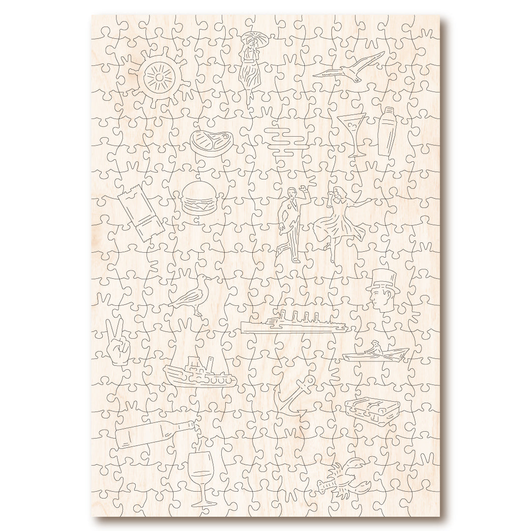 Discover a nostalgic piece of art with this vintage travel poster puzzle. Crafted from beautiful wooden pieces, this puzzle showcases an advertising poster for the Cunard Line, capturing the allure of transatlantic travel from a bygone era. With 250 irregular and whimsical shaped pieces, this puzzle is a delightful challenge for puzzle enthusiasts and art lovers alike. Piece by piece, relive the golden era of travel.