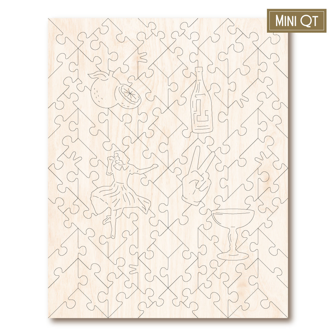Our MINI QT puzzles are laser cut from thick, 4mm plywood and include 5 whimsies - they make a great puzzle snack!