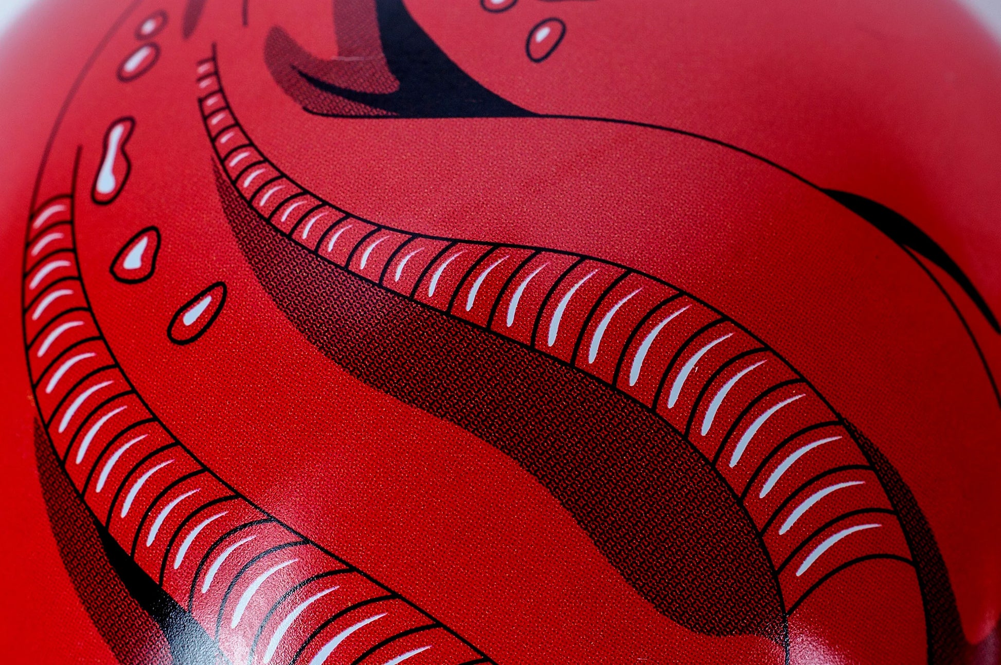 The bauble bursts with vibrant colors, a festive explosion of bright reds and deep blues, mirroring the squig's natural hues. It features a jolly squig, complete with its trademark gaping maw and a tangle of tentacles, ready to bounce around the lower branches of your Christmas tree. This bauble captures the mischievous essence of the squigs with a level of detail that Warhammer fans and collectors will cherish.