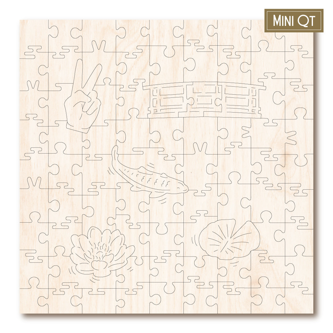 Our MINI QT puzzles are laser cut from thick, 4mm plywood and include 5 whimsies - they make a great puzzle snack!