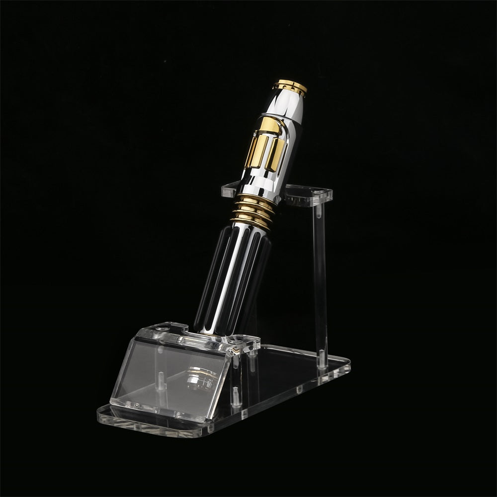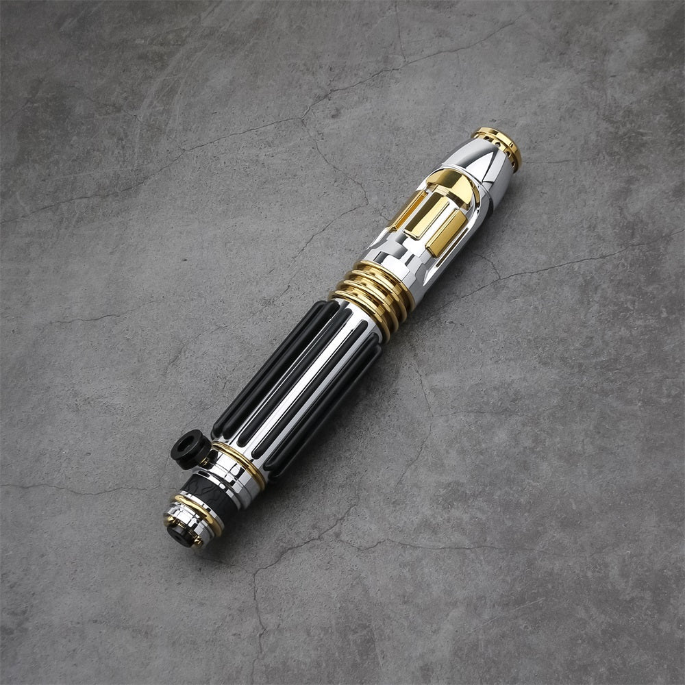 Elegance meets power. The Windu saber faithfully replicates the unique amethyst-bladed weapon of Mace Windu, Jedi Master and champion of the Republic. With its regal gold accents, silver finish, and commanding presence, this saber stands out in any collection or duel. Channel the strength of Vaapad and stand firm in the face of darkness with Windu in hand.