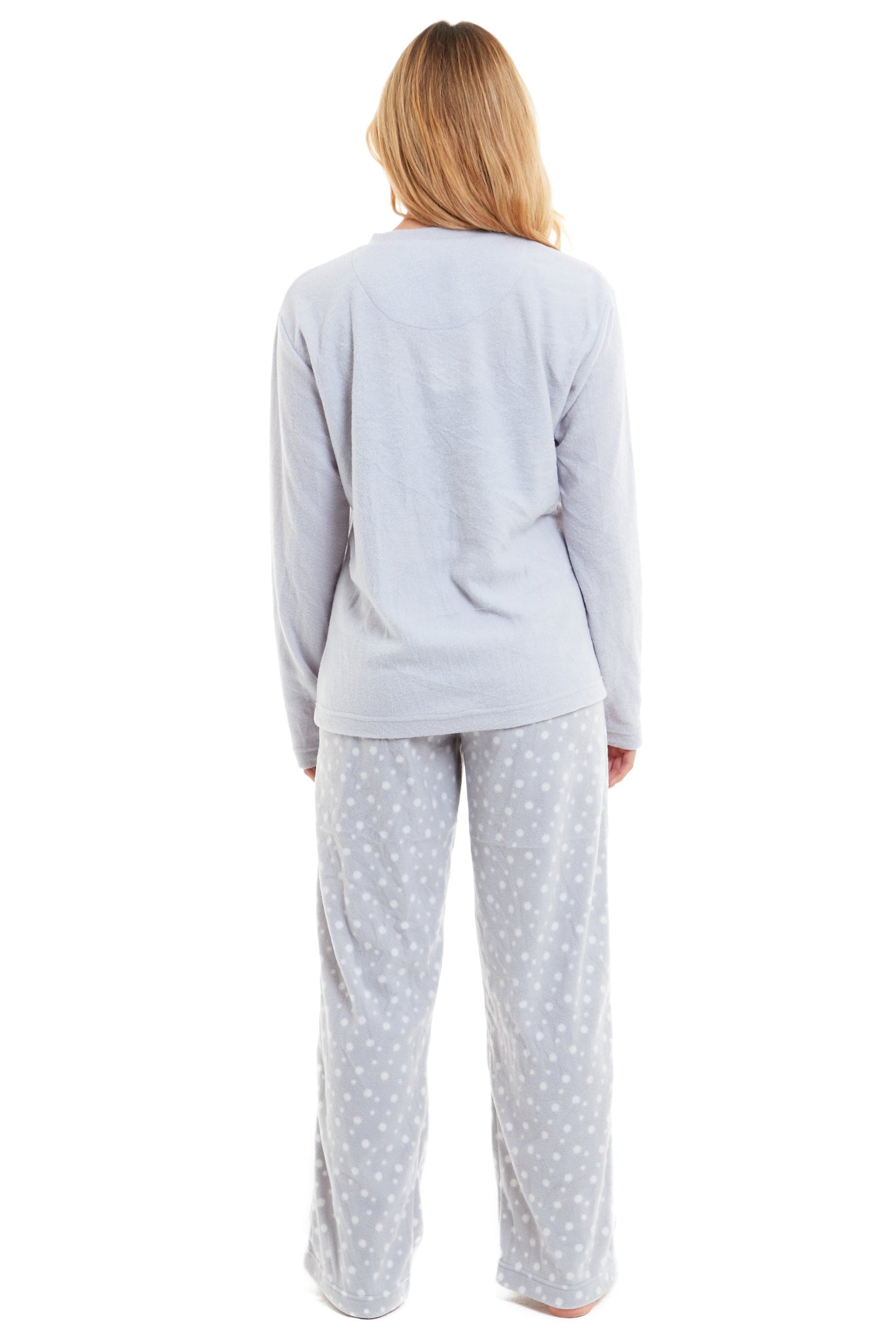 Description: The pyjama set features a beautiful soft polar fleece fabric for the top, combined with contrasting patterned bottoms. Made from 100% polyester, this fabric ensures both durability and easy care, making it a long-lasting addition to your wardrobe.