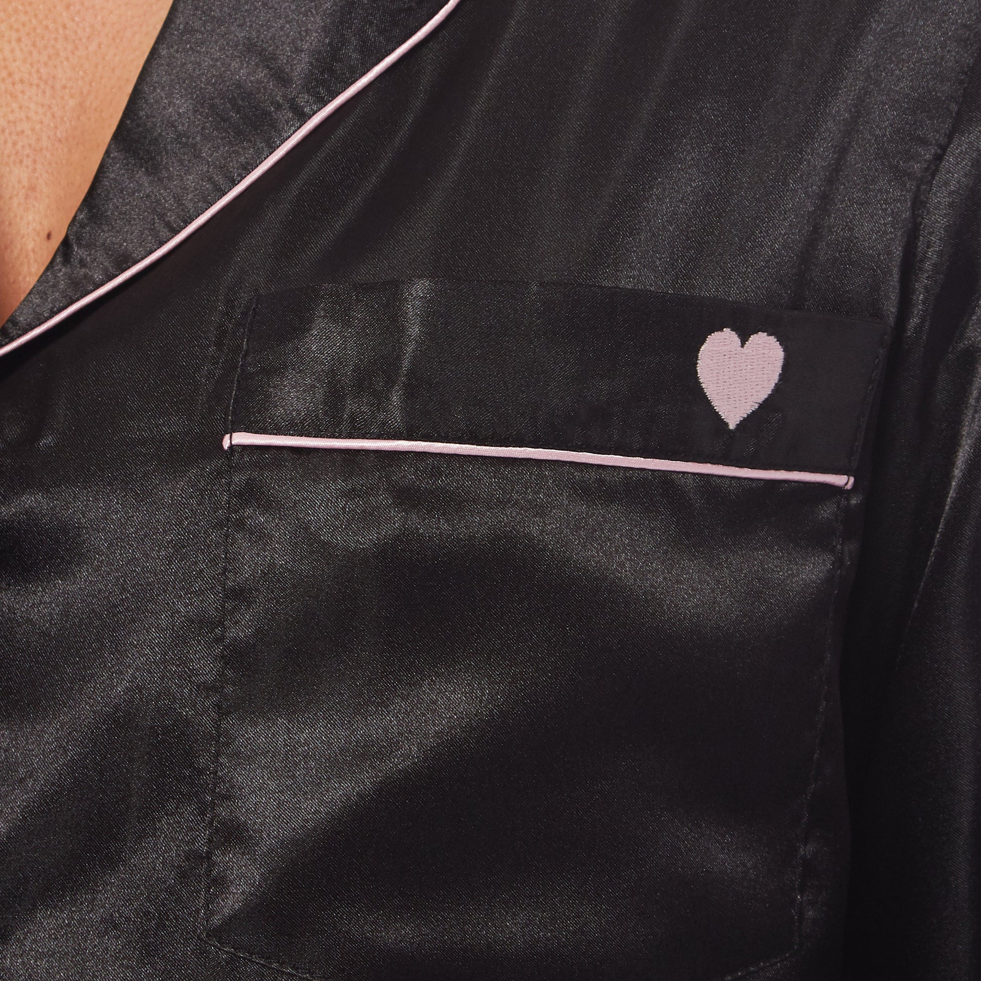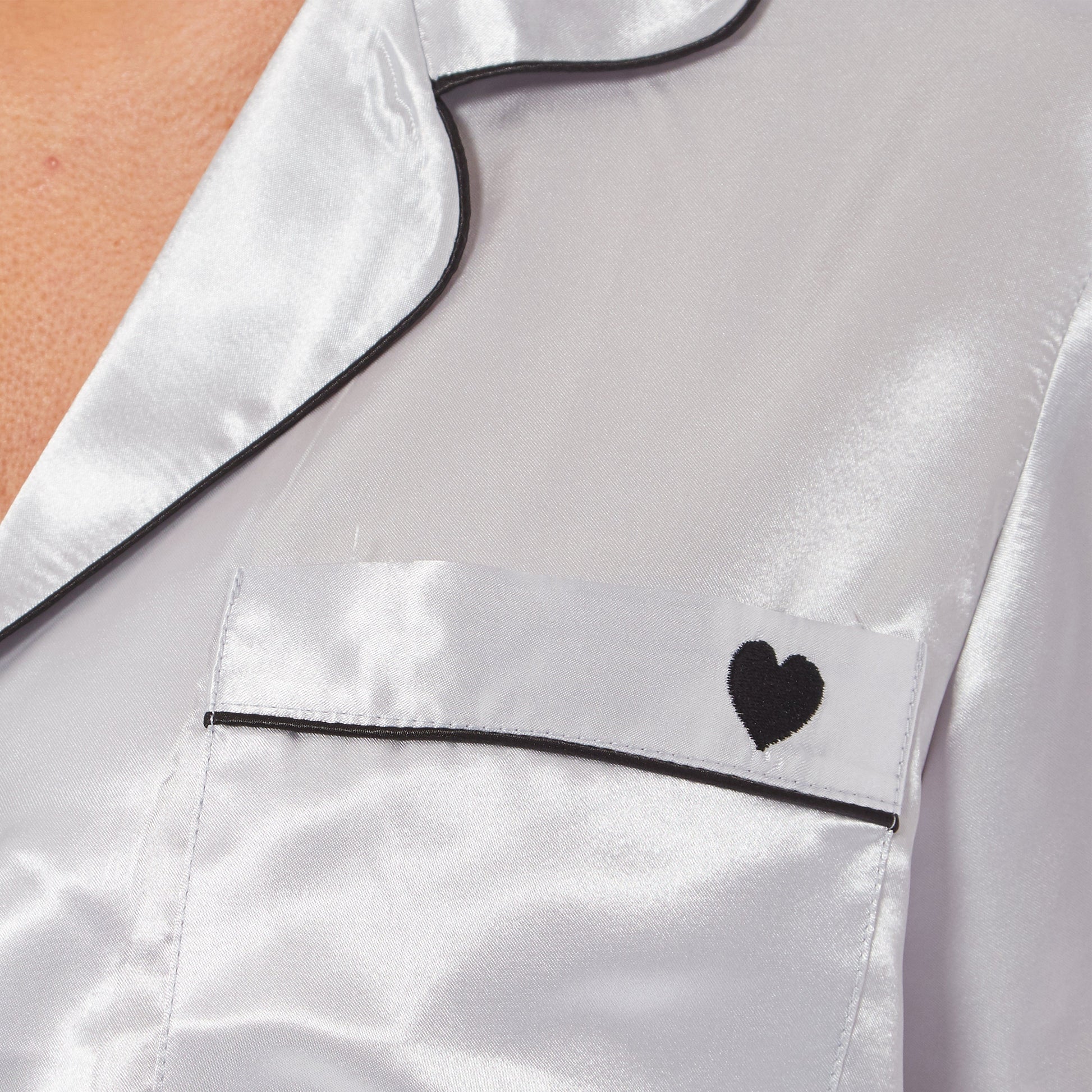 Women's Satin Silk Luxurious Pyjama Set with Dress Shirt Collar and Loose-Fitting Pants in Black Pink Grey by Daisy Dreamer