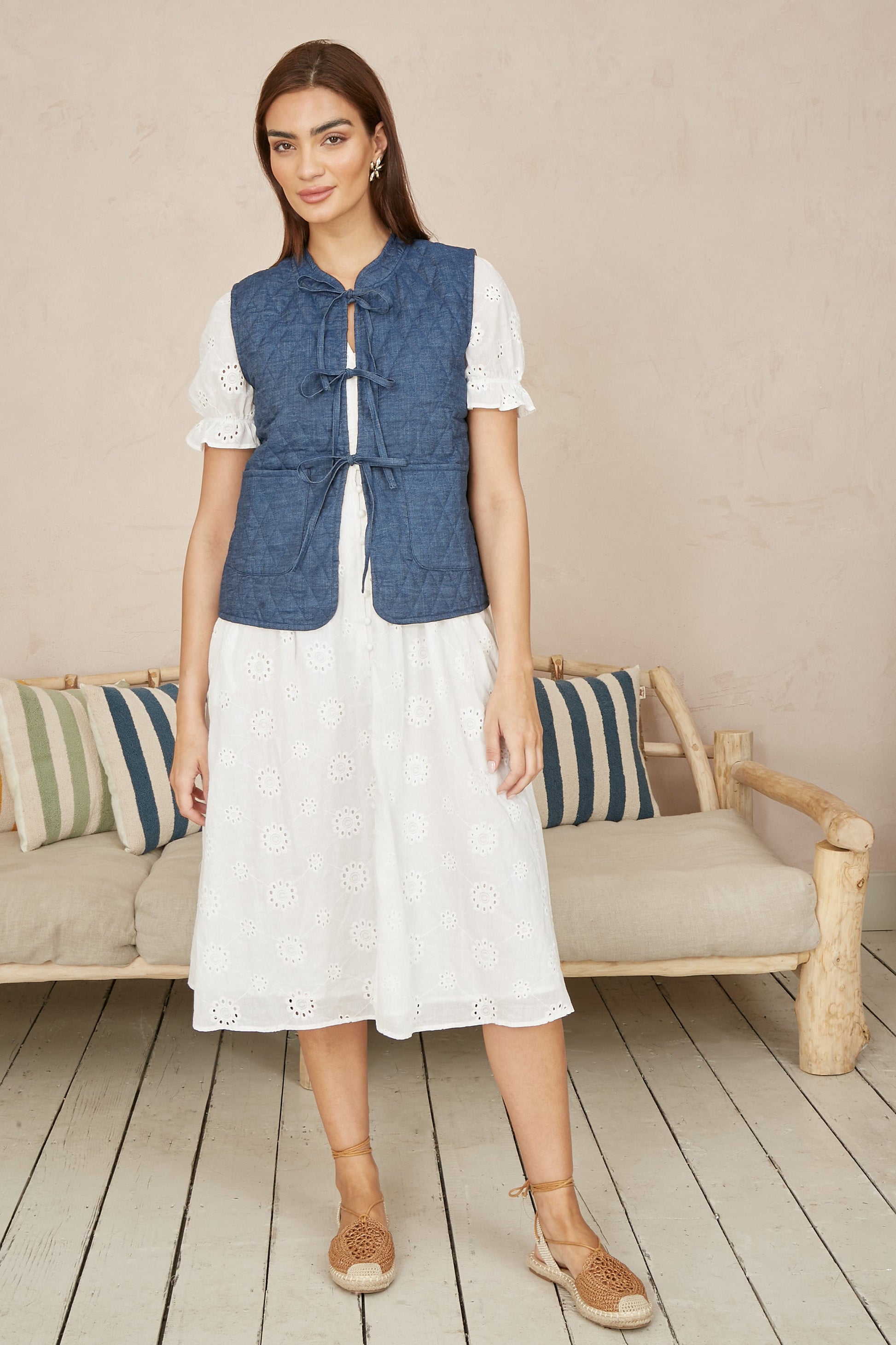 Yumi Blue Chambray Cotton Quilted Reversible Vest