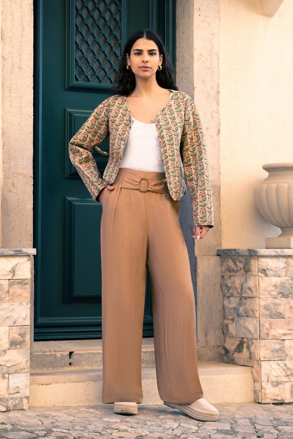 For bang on trend outerwear for the summer we love this Blue cropped quilted jacket from Yumi. Made using a traditional quilting technique, from lightweight cotton, this reversible garment really is a show stopper. With a different unique print on the inside, the tags and care labels are sewn into the pockets so you can change your look easily. Pair with jeans and a T-shirt for an off duty look, or 2!