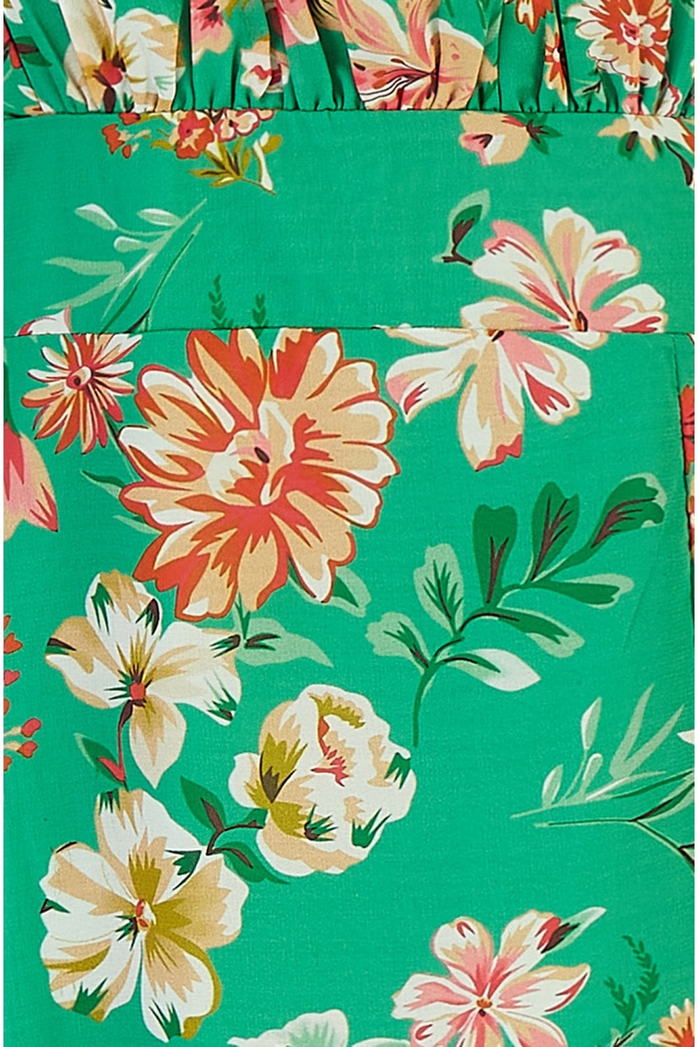 Yumi Green Recycled Floral Print Square Neck Maxi Dress With Split Hemline