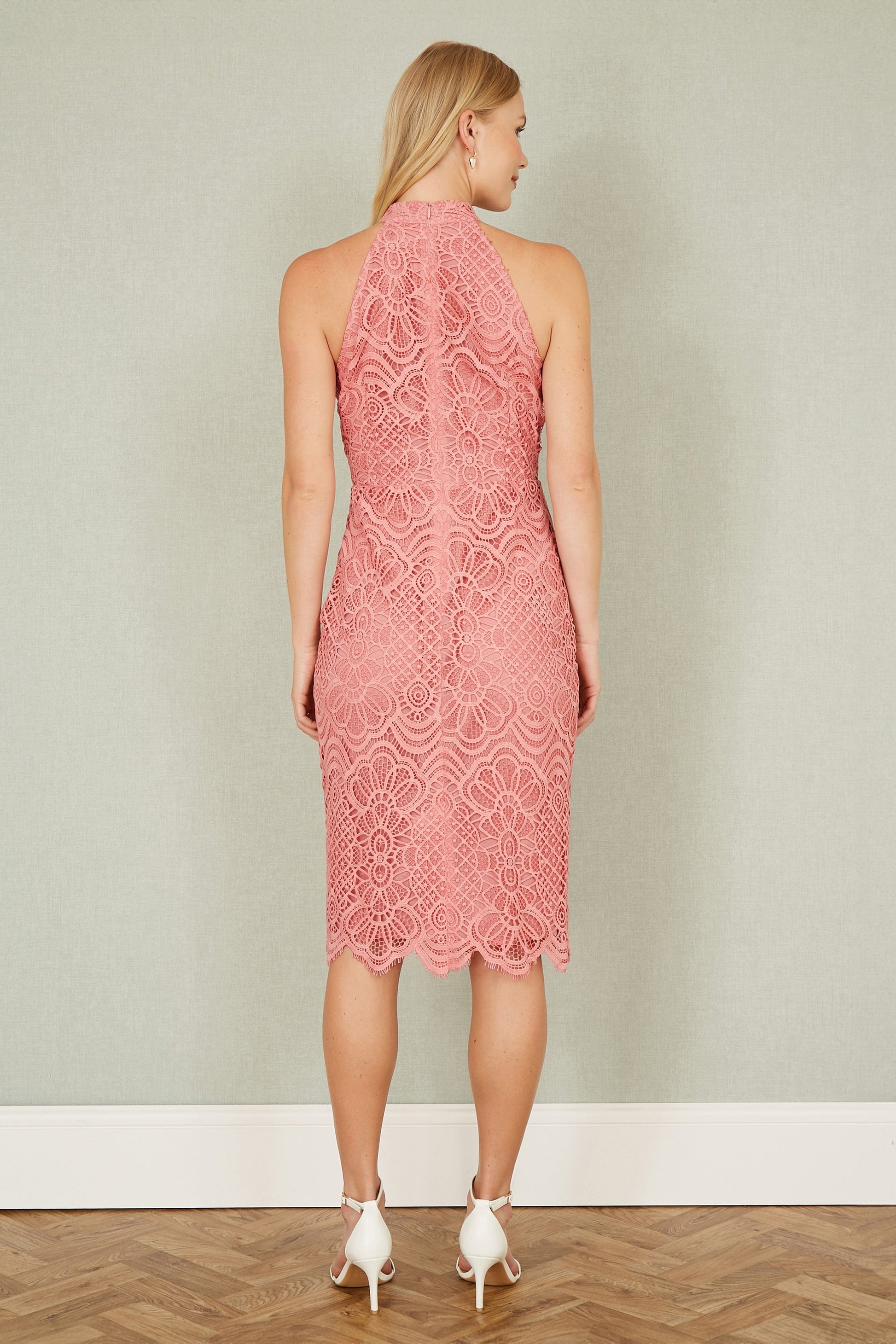 This lace beauty is begging to be worn for wedding season. The halter neck design is elegant and flattering, with all over lace completing the look. A fitted style to highlight your shape, all fully lined for a perfect invite outfit.